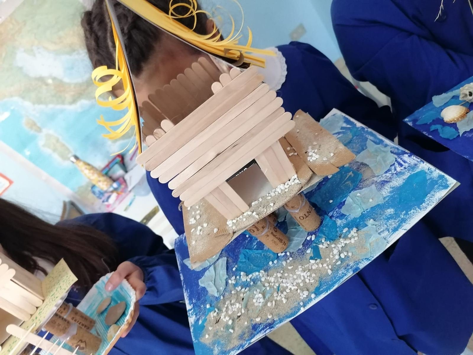 Indagando gli esordi del mondo e la progressiva evoluzione della civiltà umana, gli studenti hanno passato in rassegna le forme dell’arte preistorica mediante varie attività: dal disegno con il carbone alla creazione di diorama delle abitazioni del Paleolitico e del Neolitico; dall’arte del graffito al calco con il gesso; dalla riproduzione di gioielli e monili alla realizzazione delle armi impugnate dai nostri antenati.