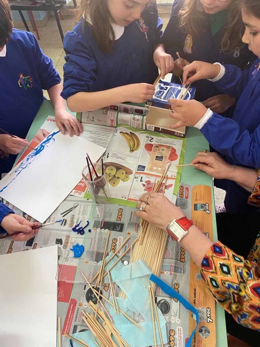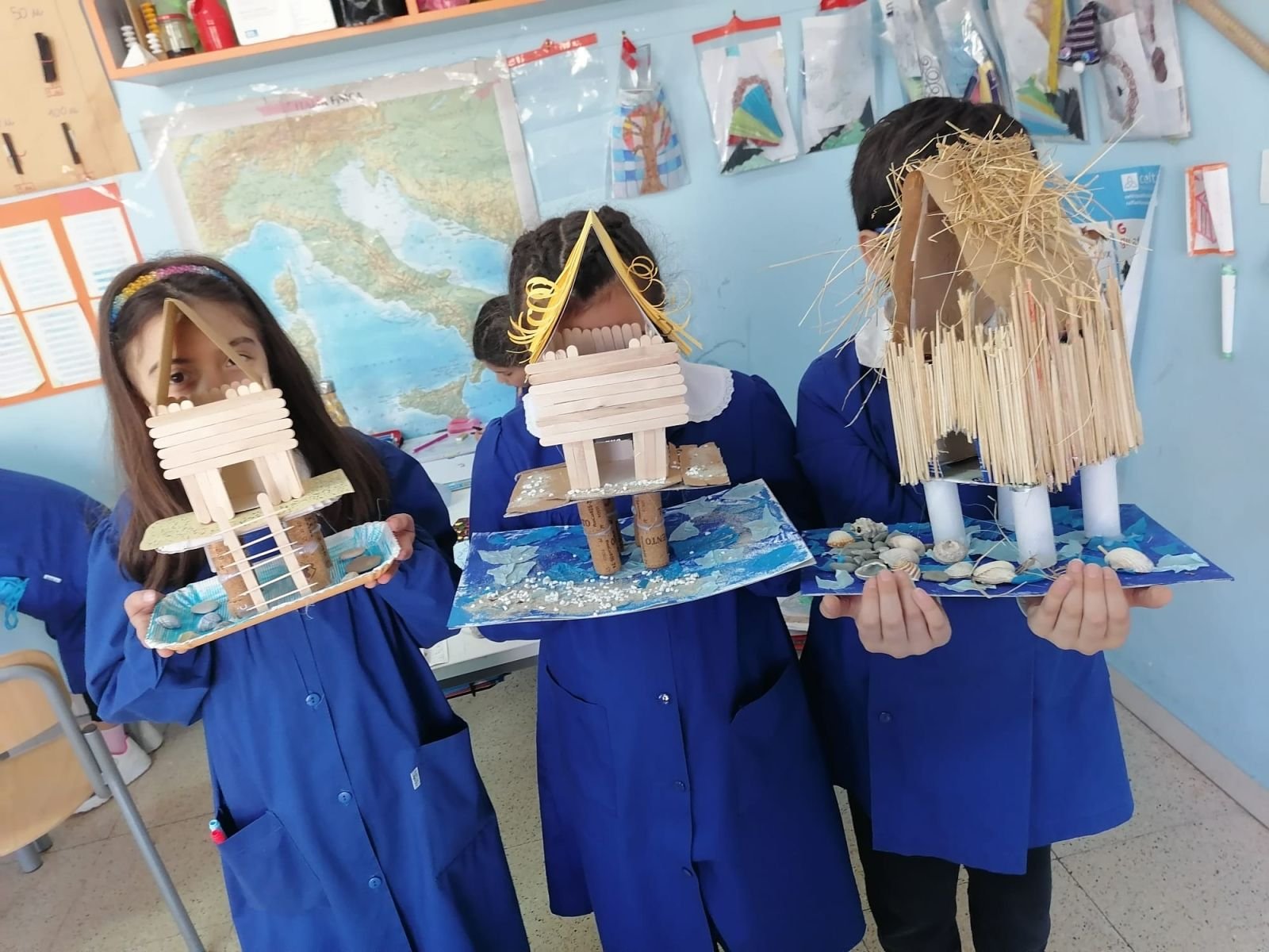 Indagando gli esordi del mondo e la progressiva evoluzione della civiltà umana, gli studenti hanno passato in rassegna le forme dell’arte preistorica mediante varie attività: dal disegno con il carbone alla creazione di diorama delle abitazioni del Paleolitico e del Neolitico; dall’arte del graffito al calco con il gesso; dalla riproduzione di gioielli e monili alla realizzazione delle armi impugnate dai nostri antenati.