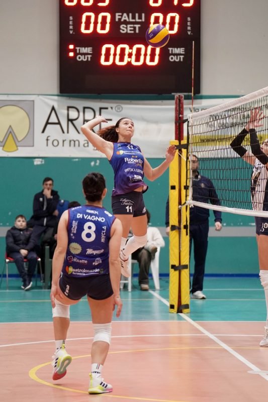 A metà del terzo set alza bandiera bianca Alejandra Rodriguez vittima di un problema al polpaccio e mister Cosimo Meuli fa esordire in questa stagione Sofia Coppi. Il cambio sortisce l’effetto di mandare in confusione la squadra ospite ed il Turi con i denti porta a casa la terza frazione.