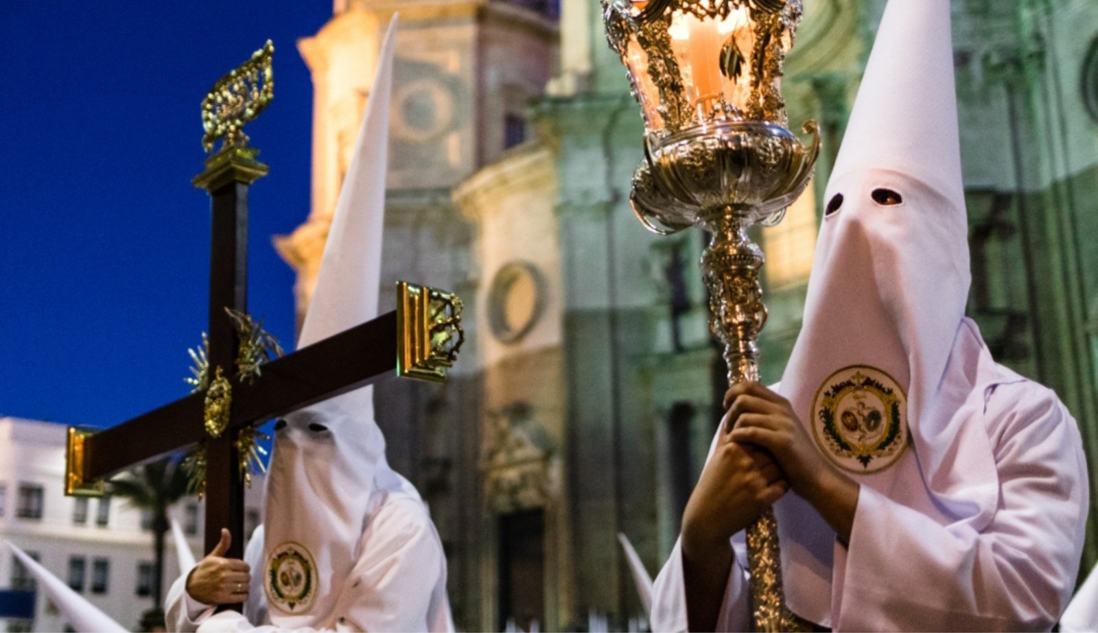Andando per i paesi della regione dell’Andalusia è possibile assistere a processioni e riti sia di giorno che di notte, accompagnati dalle numerose confraternite (“cofradias”) e dai tanti penitenti (“nazarenos”) vestiti con variopinte tuniche, tutti rigorosamente incappucciati (“capirote”) con la torcia accesa nella mano, e a piedi nudi segno di penitenza. In alcuni casi indossano anche il “cilicio” o portano pesanti croci con la catena legata alla caviglia.