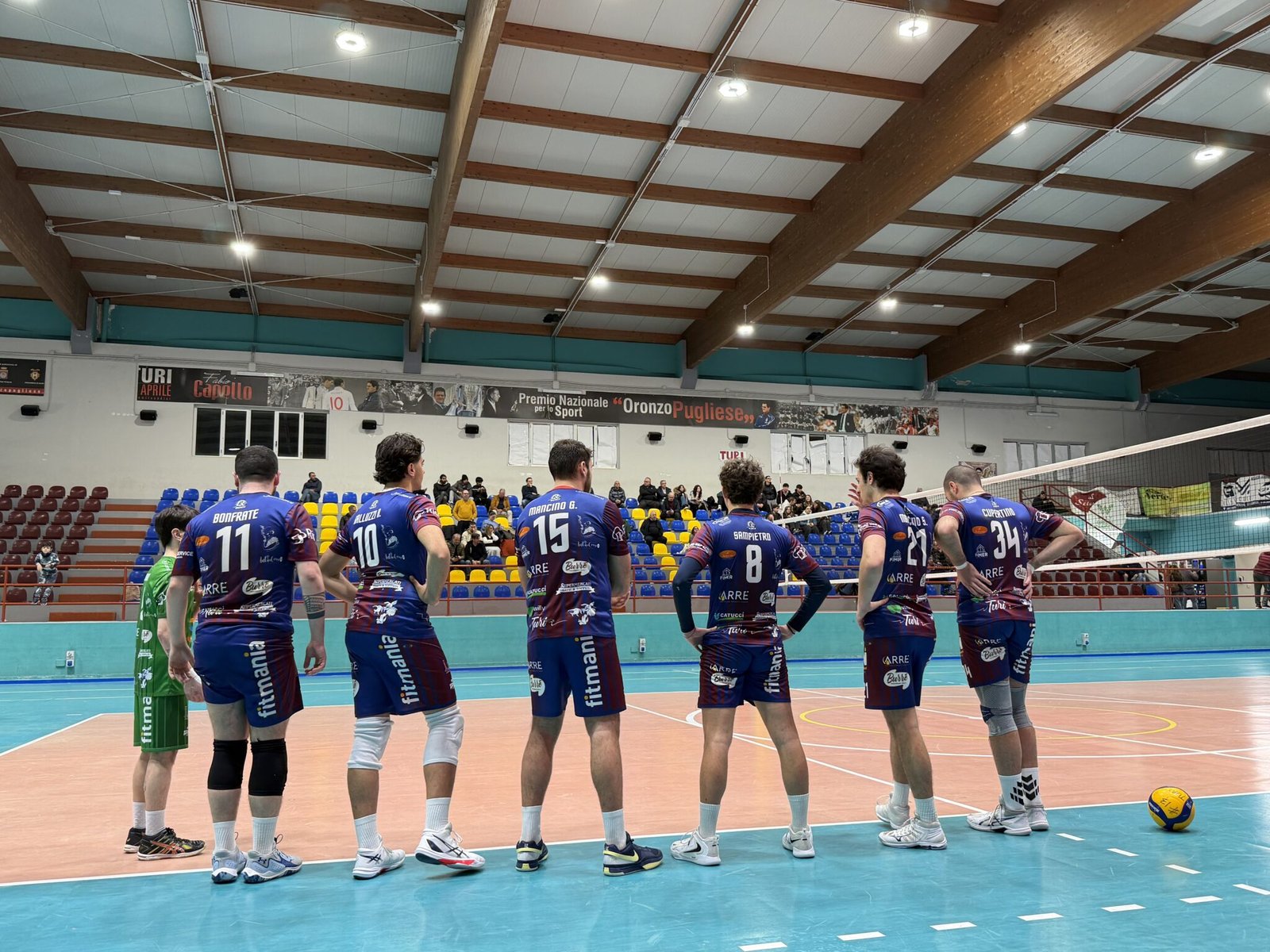 Mister Difino, viste le defezioni già citate, schiera i suoi con Bonfrate al palleggio e S. Mancino opposto, N. Galluzzi e Sampietro laterali, capitan Cupertino e G. Mancino centrali, M. Campana libero. Coach Masiello si affida a Vannicola in regia e Lopedota opposto, Duggento e Caldarola coppia di schiacciatori, Laudadio e Castrovilli al centro, l’ex biancoazzurro Dammacco libero.