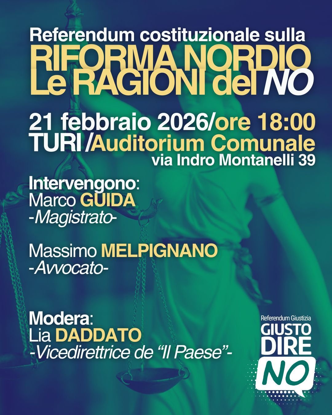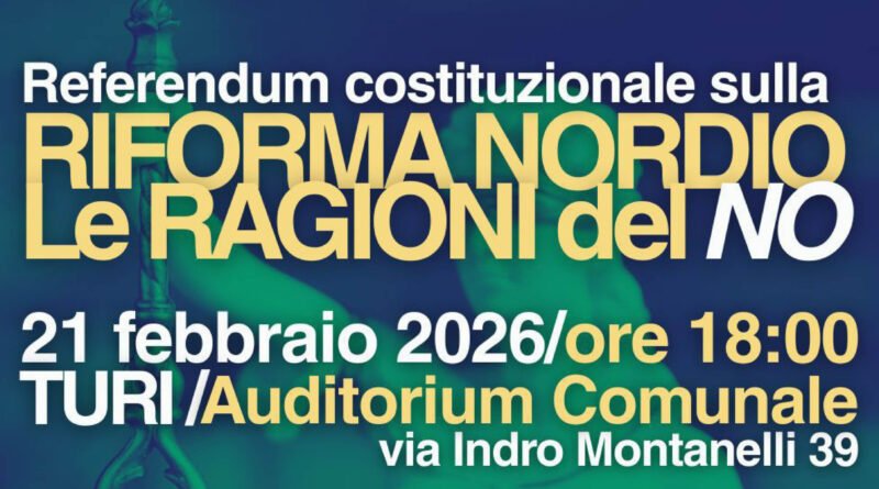 Sabato 21 febbraio 2026, alle ore 18.00, l’Auditorium Comunale (Largo Pozzi) ospiterà un momento di confronto per approfondire le ragioni del NO al referendum costituzionale sulla “riforma Nordio”.