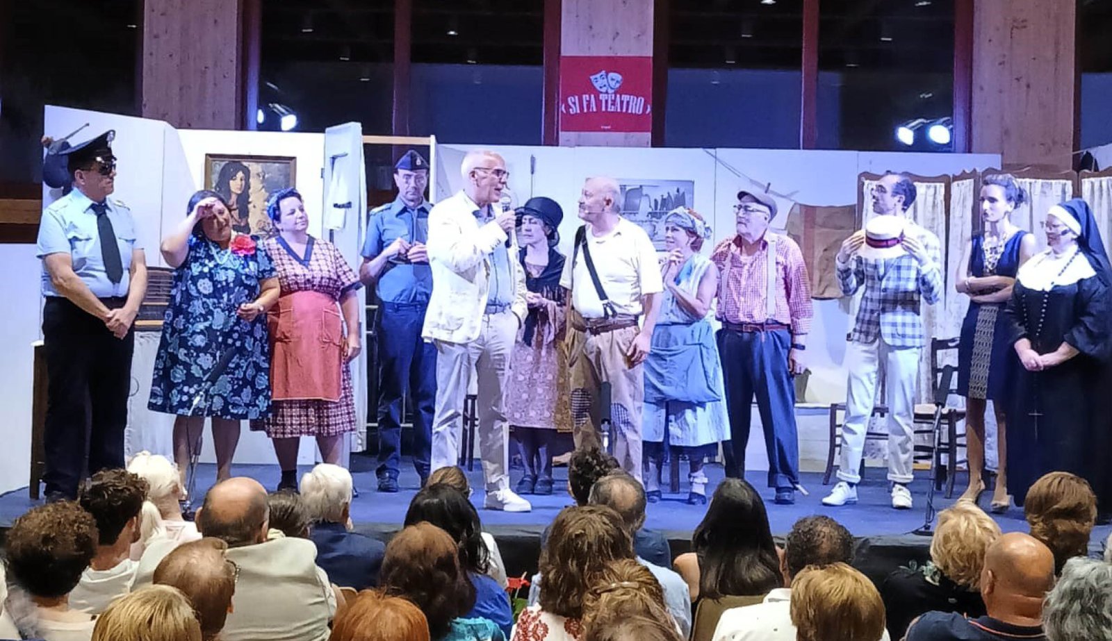 Accanto a lui, un gruppo di attrici e attori autodidatti che hanno saputo conquistare il pubblico con talento, passione e una comicità genuina che ha riempito la sala di applausi e risate.