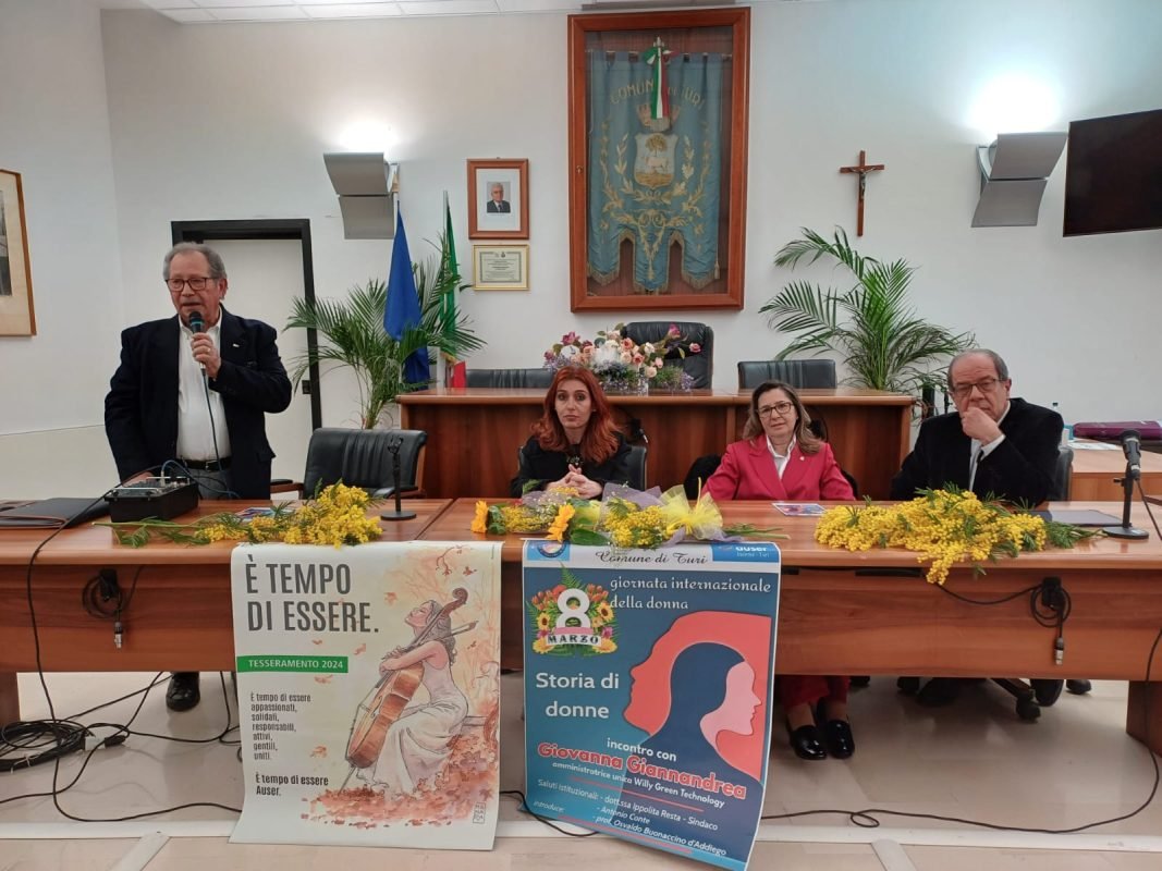 In occasione della Giornata Internazionale della Donna, presso la Sala Consigliare del Comune di Turi, a partire dalle ore 18:30, si è tenuto l’evento “Storia di donne: Incontro con Giovanna Giannandrea, amministratrice unica di Willy Green Technology”, introdotto dal professor Osvaldo Buonaccino d’Addiego, che ha visto la partecipazione di Imma Bianco assessore alle politiche sociali del Comune di Turi.
