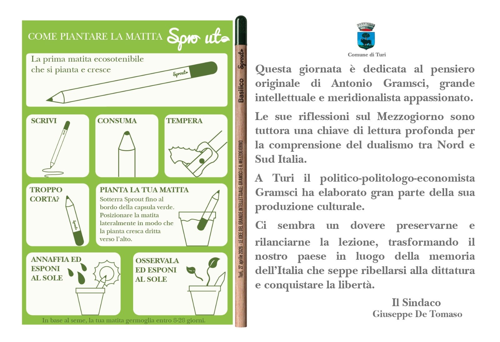 Ai partecipanti sarà inoltre distribuita una speciale matita ecosostenibile piantabile, simbolo di crescita, conoscenza e futuro: un piccolo gesto concreto per legare il messaggio culturale della giornata ai valori della sostenibilità e della cura del territorio.